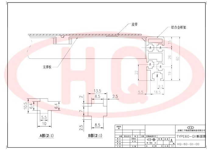使用強度更高的60mm鋁合金型材支架,皮帶傳送、頭部(或上部)驅動,直線輸送。