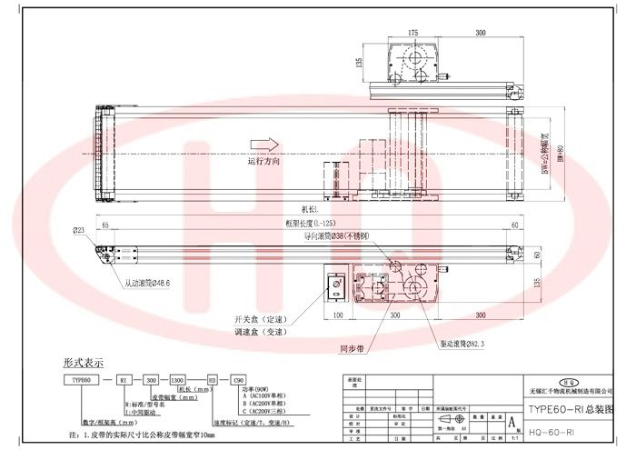 使用強度更高的60mm鋁合金型材支架,皮帶傳送、驅動。輸送機兩端使用R11.5的滾筒,方便與其他輸送機對接,使物品輸送比較順暢。驅動部為鑄鋁一體成型,主動輪和從動輪為鋁同步輪,皮帶為樹脂同步帶,具有精度高、靜音性及耐久性,無油脂污染。標準式樣一端為滾筒端。