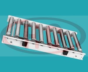 該型電動滾筒驅動輸送機使用直徑57mm的電動滾筒,與輔助滾筒之間使用鏈條傳動。