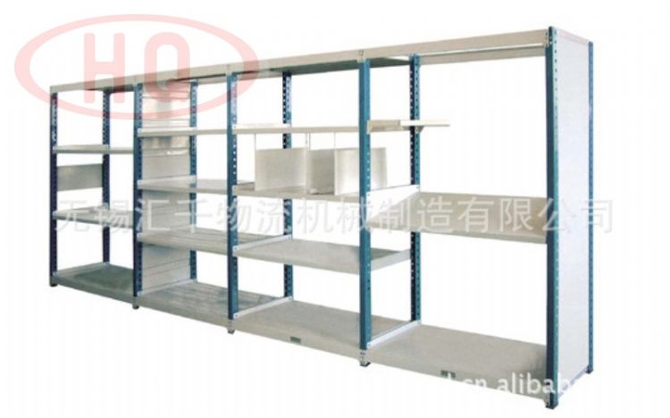 擱板式貨架通常均為人工存取貨方式,組裝式結(jié)構(gòu),層間距為50mm均勻可調(diào),貨物也常為散件或不是很重的已包裝物品(便于人工存取),貨架高度通常在2.5m以下,否則人工難以觸及(如輔以登高車則可設(shè)置在3m左右)。單元貨架跨度(即長度)不宜過長,單元貨架深度(即寬度)不宜過深,按其單元貨架每層的載重量可分為輕、中、重型擱板式貨架,層板主要為鋼層板、木層板兩種。擱板式貨架適合存放零散、輕便的貨物,可以改裝成閣樓式貨架。為了滿足物品更多的存放需求,擱板式貨架還可以配置重梁的支撐(柱),可設(shè)計(jì)成多層樓層(通常2-3層),配有樓梯、扶手和貨物提升電梯等,這就演變成了閣樓式貨架,特別適用于汽配、電子器件的等企業(yè)系列產(chǎn)品的分類保存,承載不大于500kg/㎡。