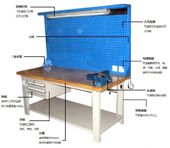 無錫匯千物流機(jī)械制造有限公司供應(yīng)重型工作臺、重型工作桌。重型工作臺采用50*100的C型鋼,工作臺的承重量超過1000KG。可根據(jù)客戶要求配置工具柜、落地抽屜柜且每柜可承載100KG的重量。也可在工作臺上方加裝掛板及燈架,配置比較靈活。