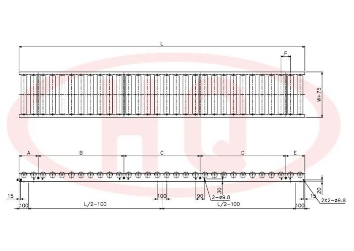 | conveyor width W+75 (mm) | 175 | 275 | 375 | 475 | 575 | 675 | 775 | 875 | 975 | 1,075 | ||