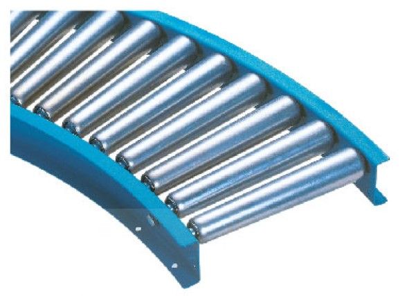 90° curved flexible conveyor is made up with tapered rollers,with big bend radius,suitable for turning joint situation .