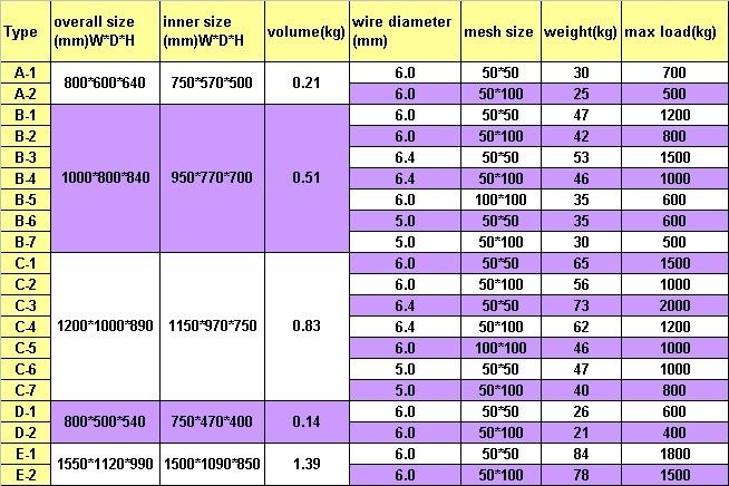 1.Internation mesh cage,widly used to store the material, semi- finished products and finished products.
