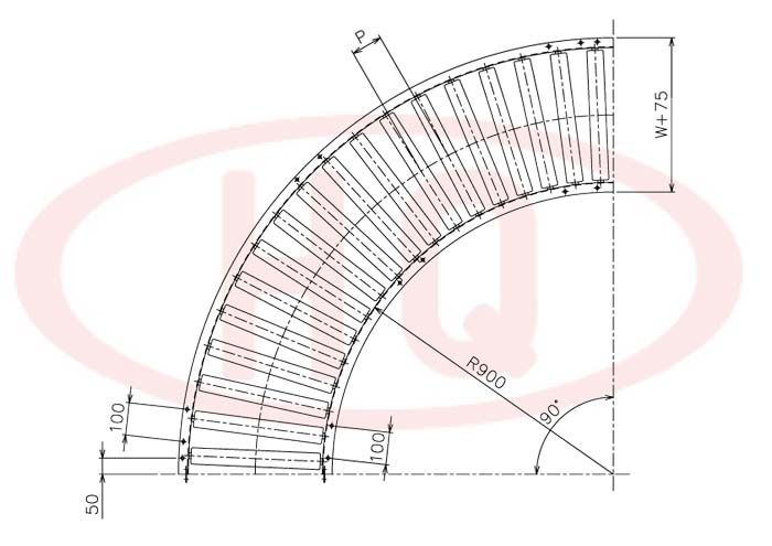 | 型 號 | 滾筒外徑(φ)×壁厚(t) 軸承 | 軸外徑(φ)×壁厚(t) 加工 | 支架形狀I(lǐng)×K×t 輸送機(jī)高(H) | 機(jī) 長 L | 滾筒幅 寬 W | 滾筒間隔 P | 轉(zhuǎn)彎半徑 R | ||||||