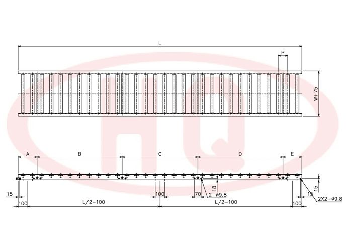 | 輸送機幅寬 W+75 (mm) | 175 | 275 | 375 | 475 | 575 | 675 | 775 | 875 | 975 | 1,075 | |||