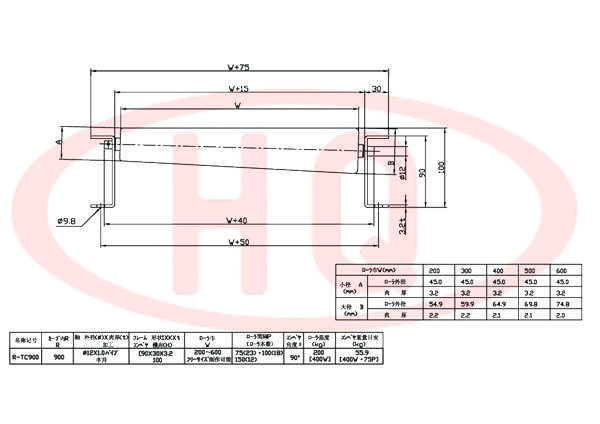| R-TC900 | 小徑 A (mm) | 滾 筒 外 徑 | 45.0 | 45.0 | 45.0 | 45.0 | 45.0 | |