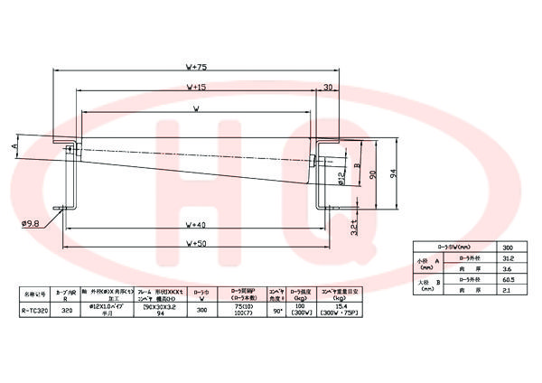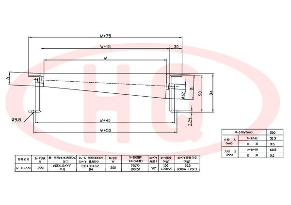 | 型 號 | 轉(zhuǎn)彎半徑 R | 軸外徑(φ)×壁厚(t) 加工 | 支架形狀I×K×t 輸送機(jī)高(H) | 滾筒幅寬 W | 滾筒間距 P (滾筒數(shù)) | 輸送機(jī) 角度 θ | 滾筒強(qiáng)度 (kg) | 輸送機(jī)重量 (kg) | ||||